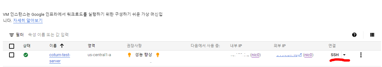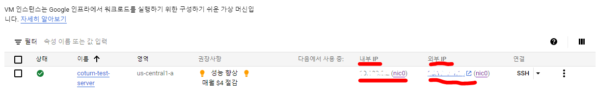 Google Cloud Platform(GCP)에 새 인스턴스를 생성하여 COTURN 서버를 만들어보겠습니다. (저도 처음이라 일단 도메인, SSL인증서 발급등은 생략하겠습니다.) 1. GCP 콘솔 → Compute Engine → VM 인스턴스 → 인.