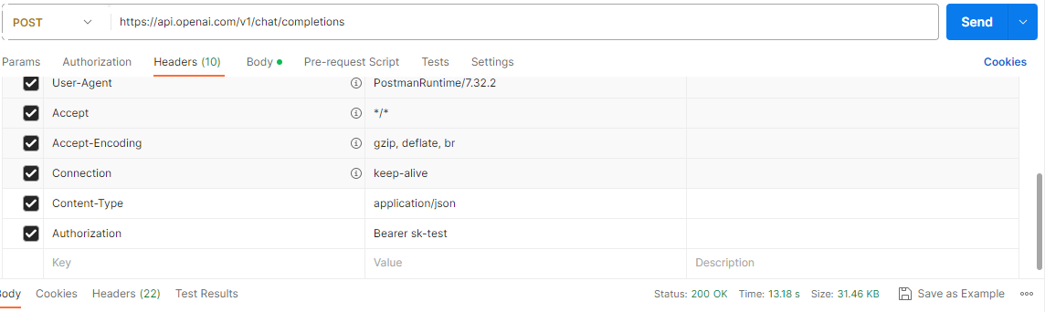 Authorization : ${OpenAI Secret API Key}