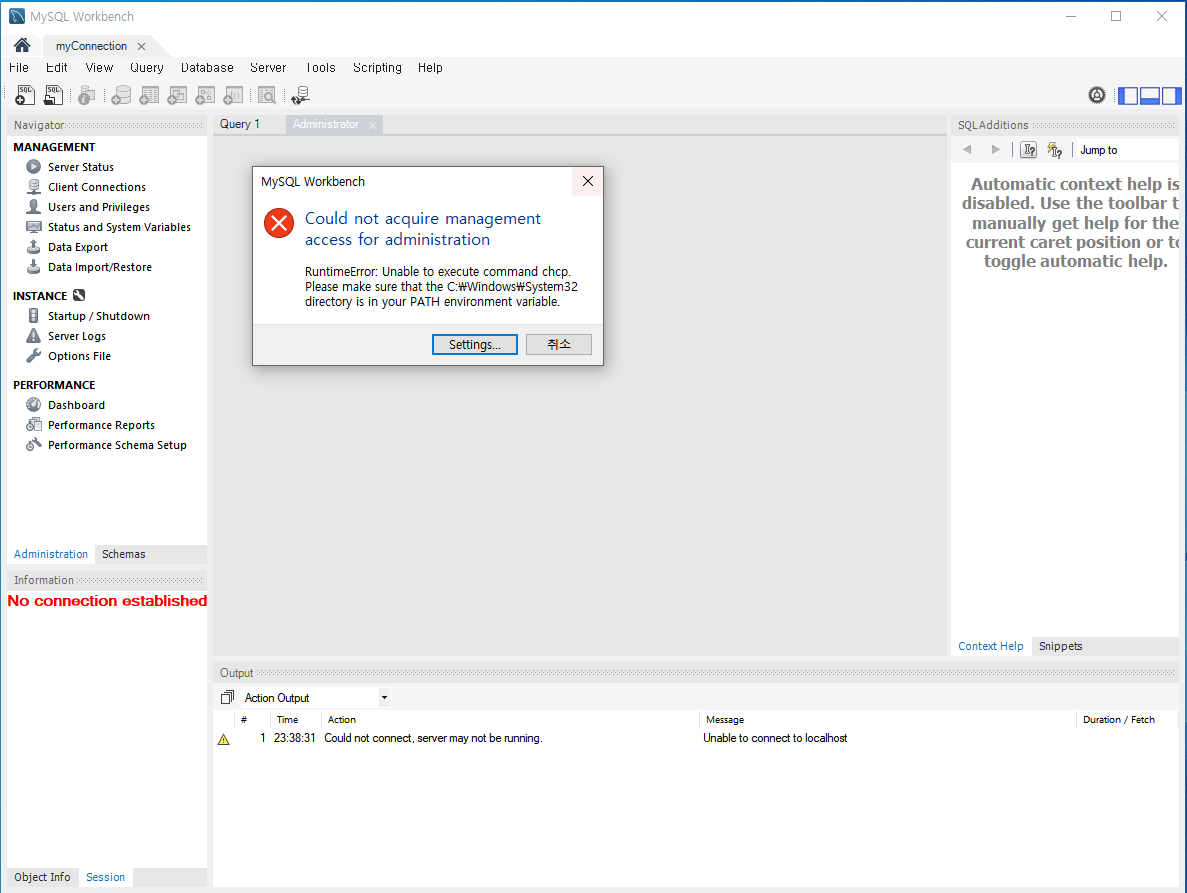 MySql workbench에 접속해보니 아래와 같은 에러가 발생했다.