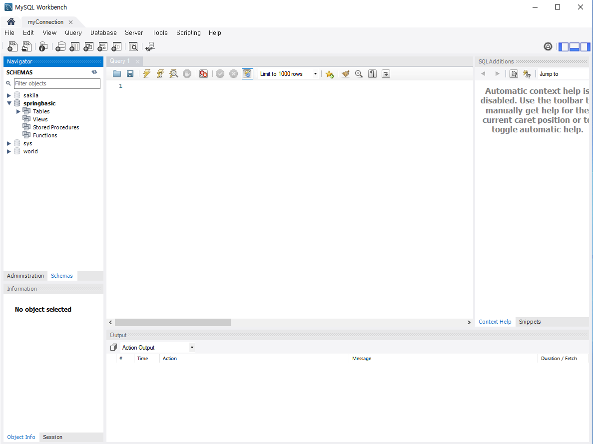 정상적으로 접속이 되었고 스키마도 원래대로 나타났다.